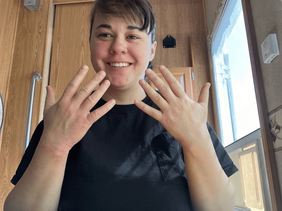 "I’m so thankful that I met Patty, and that’s not an exaggeration! I have had issues with eczema for decades of my life. The last few years several autoimmune type issues were a big problem for me. I saw general practitioners, three types of specialty doctors including dermatologists, and a naturopath. None of them were able to give me significant lasting help. After meeting with Patty, we started down a detox route that led to a night a day difference. Last summer I was so sick that I couldn’t stand in the sun for ten minutes before getting sick. This summer I am taking my walks in the park again! The photos below show a little of my progression. The close up picture is of one of my really bad days before meeting Patty. The one in a purple shirt is a good day before meeting Patty. The one with my hands raised was about a month or two into the protocol. I was showing off the progress in my arms. It was literally a couple months before that a coworker had freaked out because he thought I poured acid all over myself. The last picture is me enjoying a nice day once again! Nothing short of a miracle!"